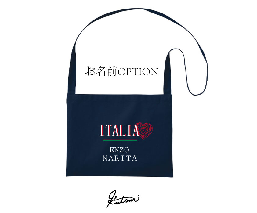 お洒落なサコッシュに、ご自分のイニシャルやお名前、チーム名のプリントを追加で入れる事が出来ます。